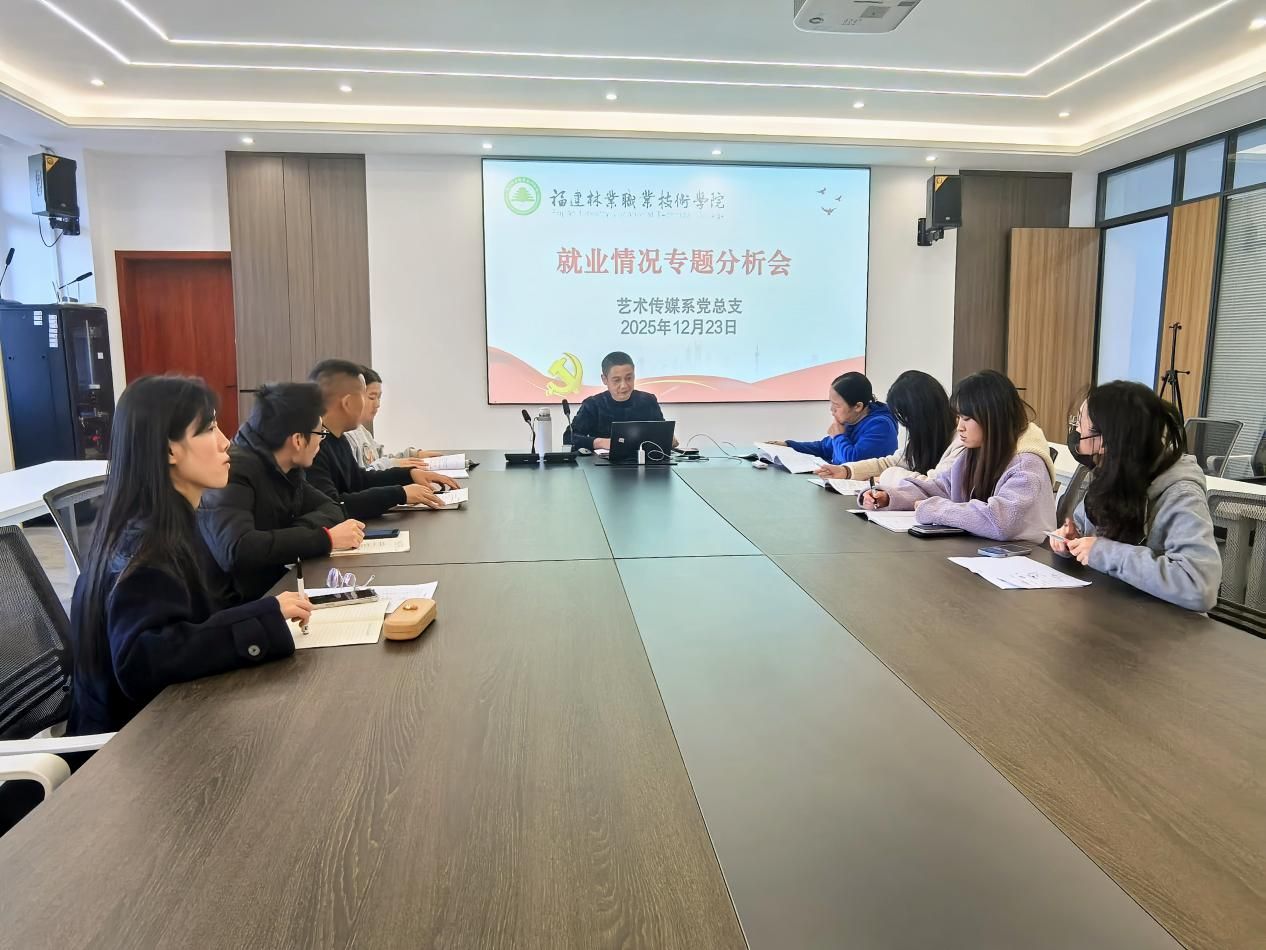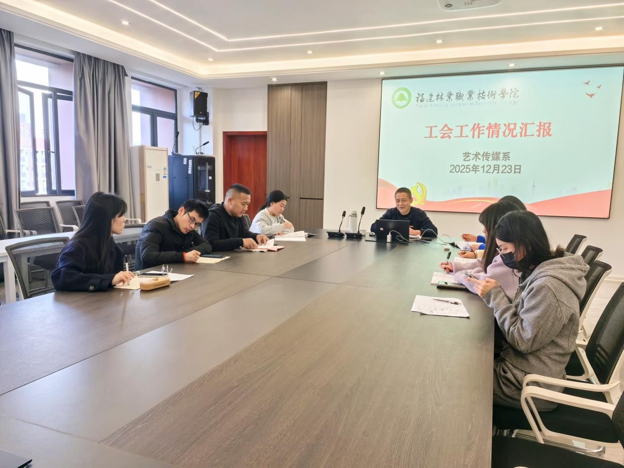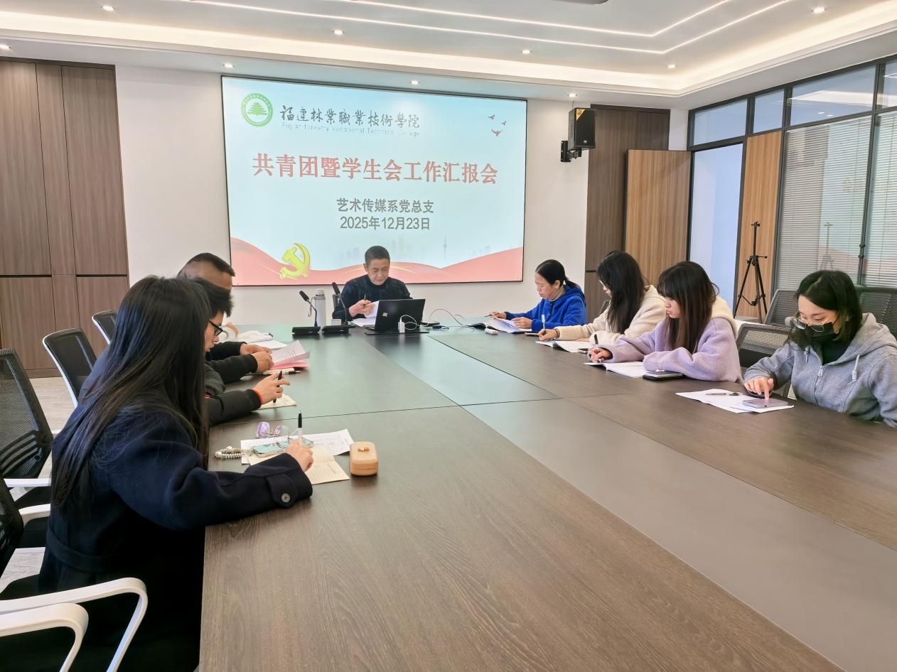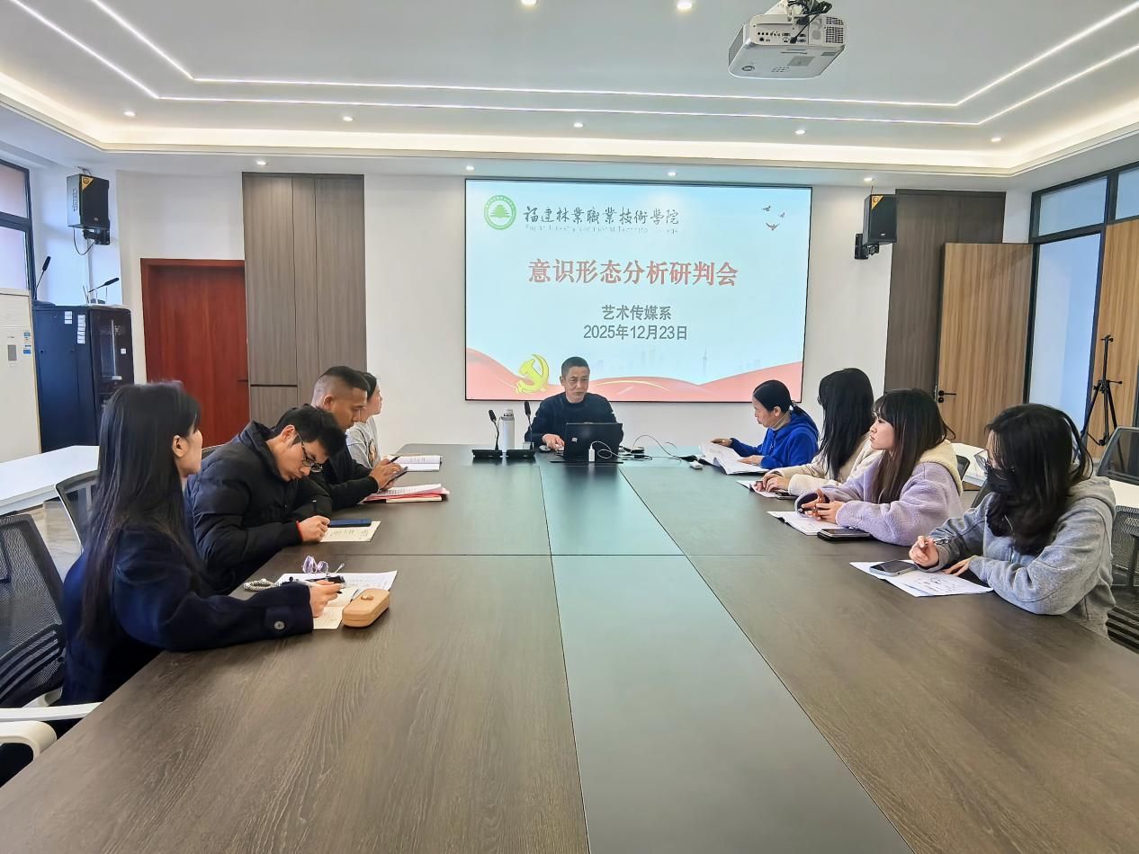 为系统总结年度工作成效,精准研判发展形势,科学谋划下一阶段重点任务,2025年12月22日,福建林业职业技术学院艺术传媒系集中召开了系列专题工作会议。会议由系党总支书记范有福主持,系副科级以上干部及全体专职辅导员参加。会议围绕意识形态工作、学生心理健康、毕业生就业、团学工作及工会工作五大主题,进行了深入的总结、分析与部署。