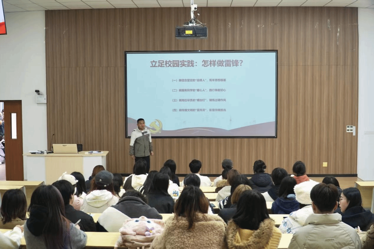 团课上,廖士喜老师围绕“认识雷锋精神、对标学生干部、立足校园实践”三个维度,系统阐释了雷锋精神的时代价值与实践意义。他指出,雷锋精神是中华民族宝贵的精神财富,它所蕴含的奉献、敬业、创新、创业精神,在新时代依然具有强大的感召力和生命力。
