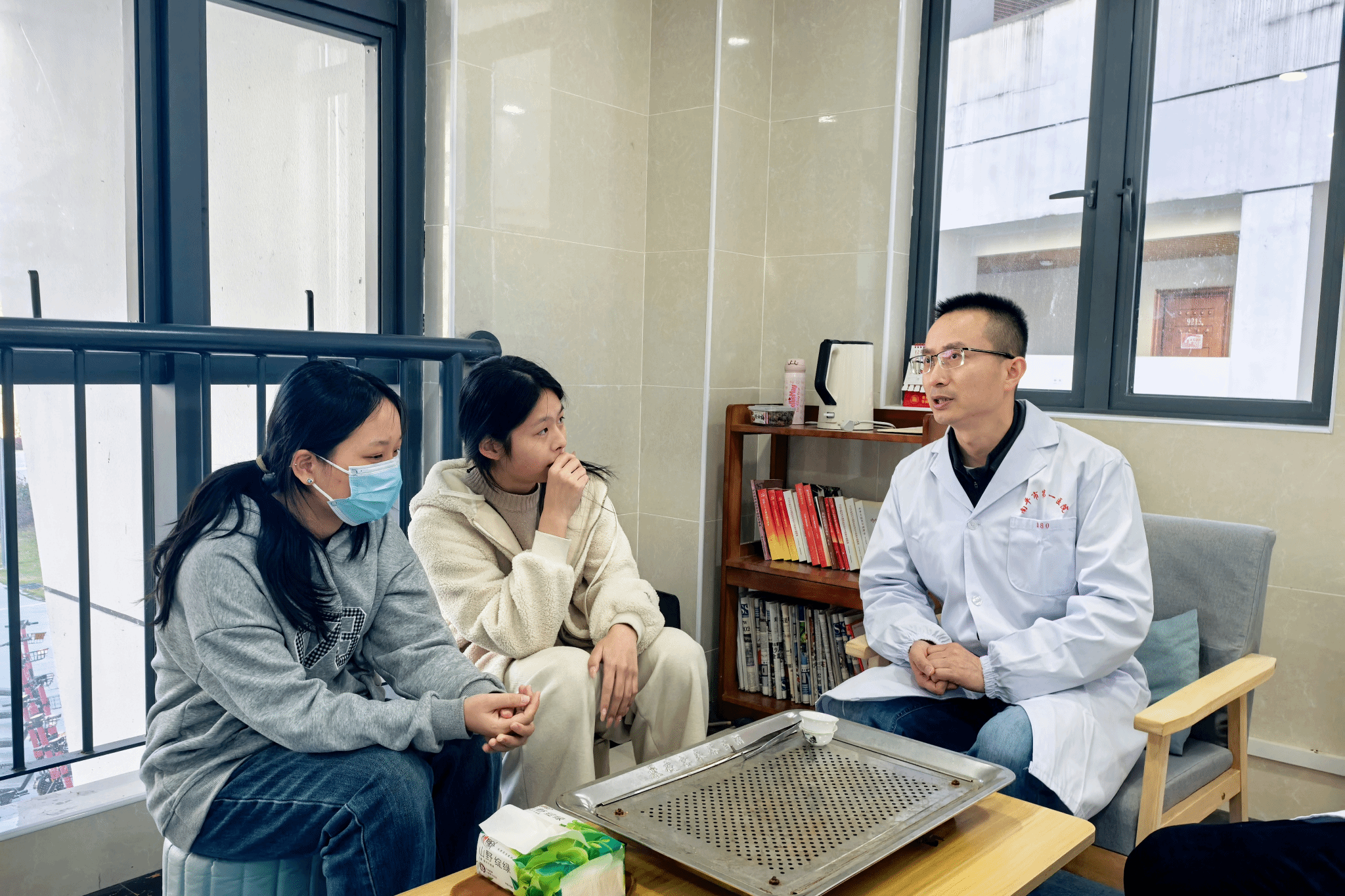 石强及刘平俊主任医师则就学生提出的突发疾病应急处理、疾病预防等问题进行细致解答,结合真实案例给出科学可行的建议。现场互动热烈,同学们踊跃提问,专家们一一耐心回应。活动期间三位主任医师还为同学们提供义诊服务,帮助同学们进行正确的健康管理。