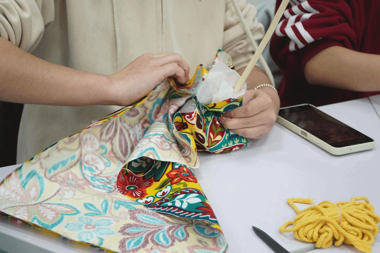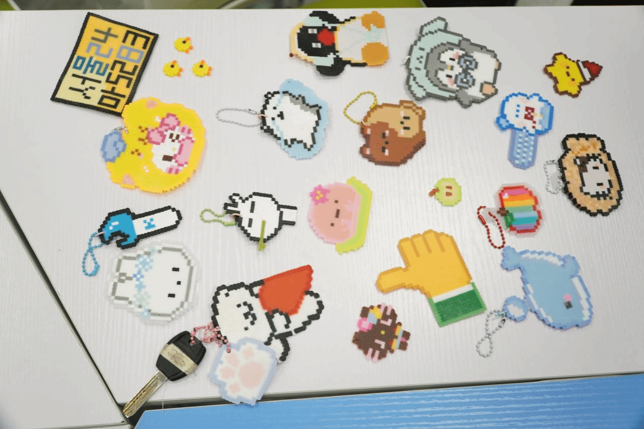 本次活动设置了艾草锤制作与创意拼豆两大特色环节,兼顾传统韵味与创意趣味。在艾草锤制作环节,同学们亲手填充艾草、细心缝制,将清香的艾草包裹进柔软布料,一个个小巧精致、散发着淡淡艾香的艾草锤逐渐成型。创意拼豆环节将活动氛围推向高潮:色彩缤纷的拼豆整齐摆放,同学们充分发挥艺术想象力,挑选心仪颜色、精心搭配、细致拼接,勾勒出卡通形象、简约图案、个性标识等各式创意作品。每完成一幅拼豆作品,同学们便有序交由现场工作人员进行专业熨烫定型,让创意定格为可留存的手作好物。