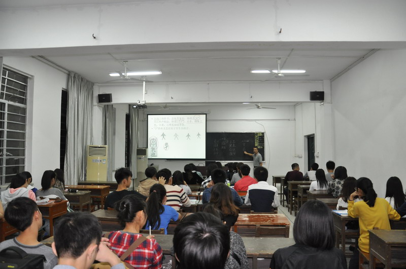 2014年10月21日晚学习时间,人文社科系在天麟校区实训楼208室举办了“校园文化论坛”专题讲座之《文字·文学·文化》。讲座由人文社科系主任成榕主讲。
