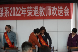 最后,曾秀云主任代表艺术传媒系致欢送辞。她深情地回顾了与荣退教师共同工作的点点滴滴,感谢他们数十年如一日辛勤工作。她表示,在四位退休教师身上体现出的扎实的专业功底、潜心育人的高尚情怀、无私奉献的崇高境界,值得系部广大教师认真学习。