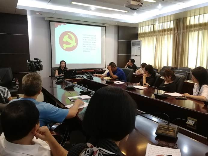 本网讯 7月7日,艺术传媒系党总支开展“上好一堂专题党课”主题活动。教工党支部黄春梅老师为大家讲一堂主题为《标志设计中的思政元素》的微党课。学院副院长罗立仪、艺术传媒系党总支书记成榕、艺术传媒系党总支副书记 系主任曾秀云、教工党支部书记邱建玲、学生党支部书记李延卿及艺术传媒系所有教工党员参加了微党课。