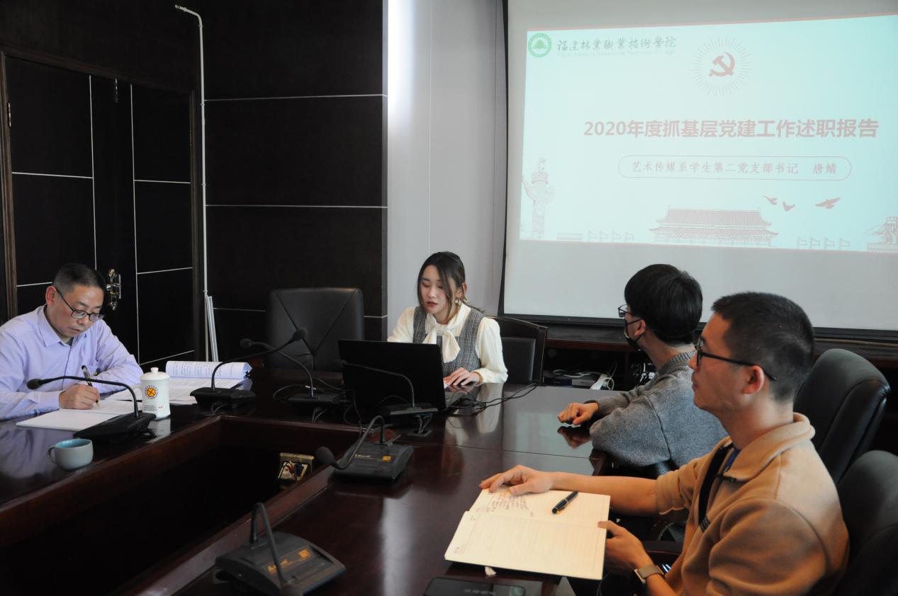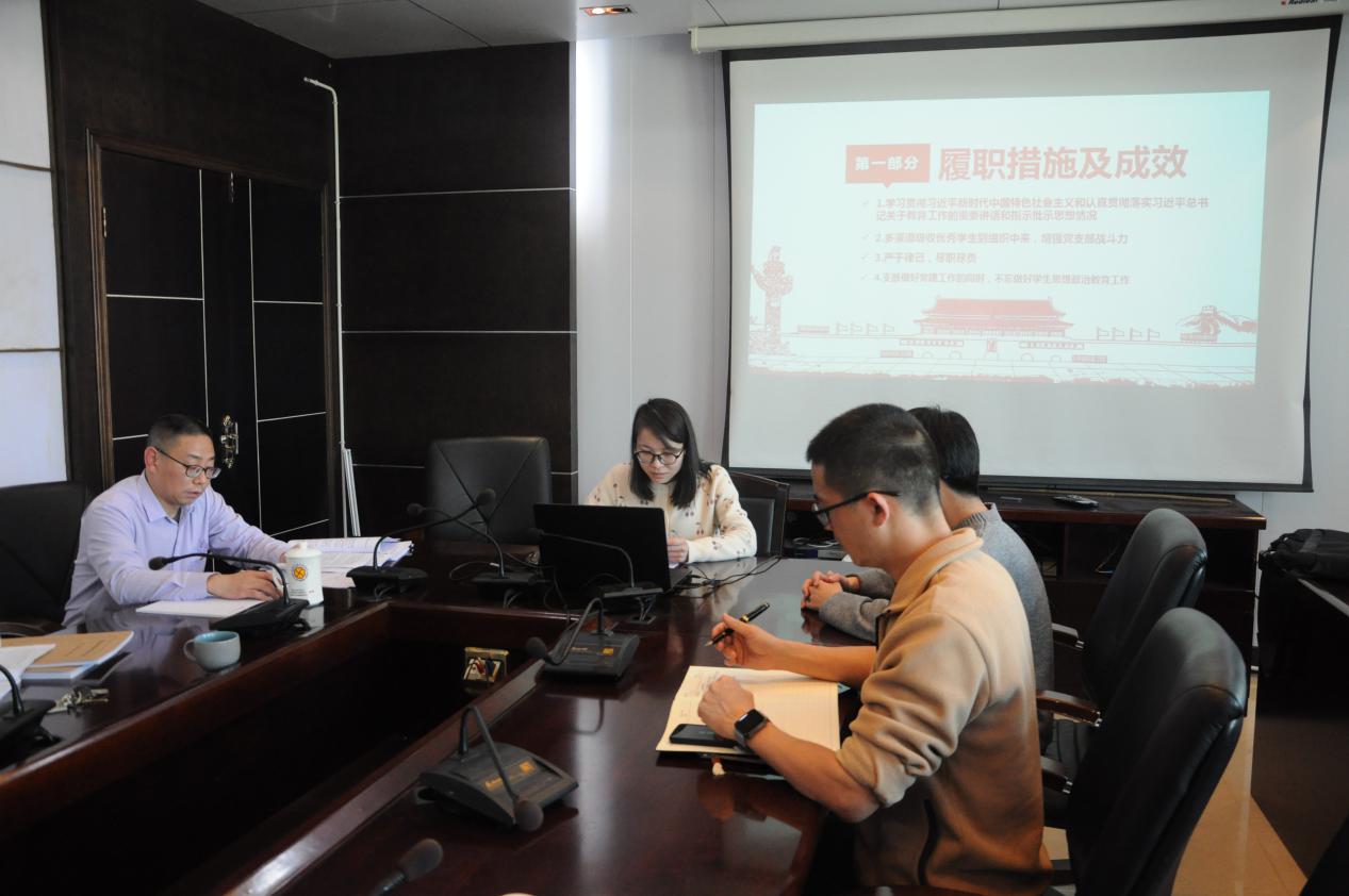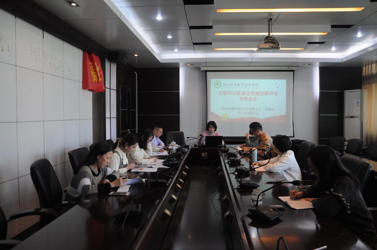 本网讯 为深入学习贯彻习近平新时代中国特色社会主义思想,把党的政治建设摆在首位,进一步推动全面从严治党向基层延伸,促进基层党建全面进步、全面过硬,艺术传媒系党总支于3月15日下午在天麟校区综合楼六楼会议室召开党支部书记抓基层党建述职评议考核会议。艺术传媒系教师党支部书记邱建玲、学生第一党支部书记李延卿、学生第二党支部书记唐婧进行现场述职,并接受参会人员的民主评议和现场测评。