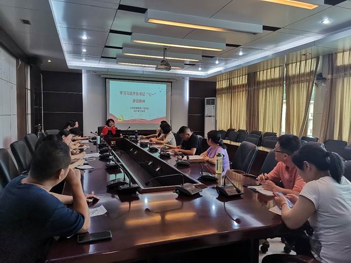本网讯 7月6日下午,艺术传媒系教工党支部组织支部所有党员学习习近平总书记在庆祝中国共产党成立100周年大会上的重要讲话精神。本次学习会由艺术传媒系教工党支部书记邱建玲主持。