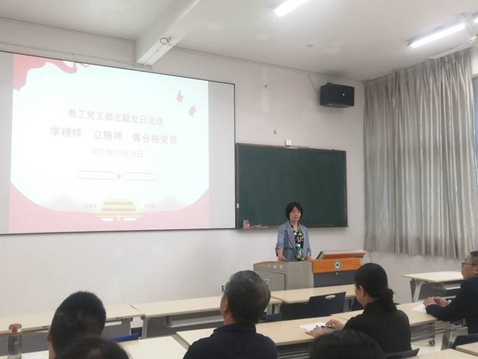 本网讯 10月26日下午,艺术传媒系教工党支部在江南校区开展“学榜样 立精神 做合格党员”主题党日活动。活动由教工党支部书记邱建玲主持。