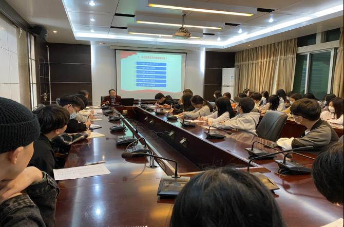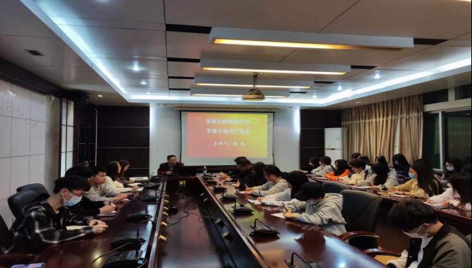 党课大讲堂第一讲于2021年11月4日晚上7点在天麟校区综合楼六楼会议室准时开讲。本次讲座由艺术传媒系党总支书记陈政老师为同学们带来主题为《发挥先锋模范作用争做合格共产党员》的专题讲座。艺术传媒系专职组织员欧阳昭勇、学生党支部书记李延卿、唐婧以及天麟校区在校预备党员、入党积极分子共50余人聆听了此次专题讲座。
