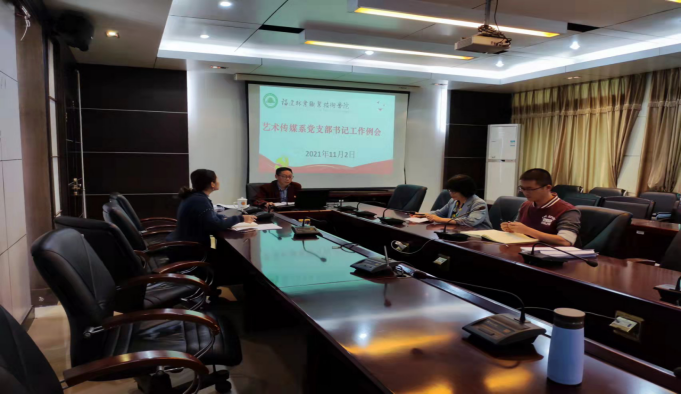 2021年11月2日,艺术传媒系在天麟校区综合楼六楼会议室召开党支部书记工作例会。本次会议由系党总支书记陈政主持,专职组织员欧阳昭勇、教工党支部书记邱建玲、学生第二党支部书记唐婧参加了此次例会。