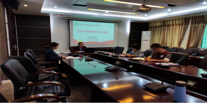 在党建示范校创建任务分解方面,系党总支书记陈政就推进组织“强基”工程,聚焦“五个到位”,打通系部“阻点”,发挥党总支政治核心作用;实施党支部“提质增效”行动计划,推进党组织书记“头雁”引领计划,聚焦“七个有力”,建好坚强堡垒;开展党员“先锋模范”带动计划,聚焦“四个合格”,打造过硬队伍等一系列涉及党总支、党支部、党员队伍建设等任务进行讲解和初步分配。