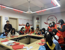 接下来在社区工人人员的应邀下,艺术传媒系党员先锋岗的志愿者们充分发挥艺术传媒系的特色送教进社区,教社区的孩子们学剪纸艺术。