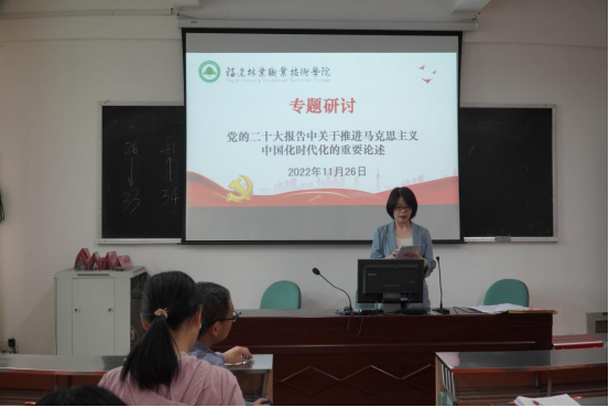 会议集中学习了党的二十大报告中关于推进马克思主义中国化时代化的重要论述。随后,结合工作实际,围绕“党的二十大报告中关于推进马克思主义中国化时代化的重要论述”作了专题研讨,廖士喜老师、邱建玲老师作了交流发言。