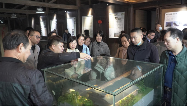 随后,大家参观了巨口乡谷园村谷园礼堂、酒坊、中正厝等景点。据巨口村吴美忠副书记介绍,谷园村谷园礼堂是中国农村试点项目支持兴建的项目。近几年谷园村积极开展艺术赋能乡村振兴工作,通过举办艺术节,引进艺术家创作和积极开发本土手工艺术品,来打造谷园村乡村旅游项目,带动乡村经济发展。