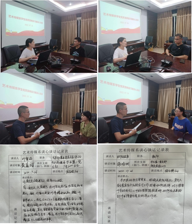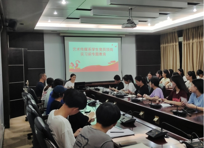 顶岗实习是高职高专学生人才培养的重要组织部分,也是学生走上社会前与社会磨合的重要的“思想教育黄金时段”。为进一步做好学生顶岗实习期间党建和思想政治教育工作,解决“最后一公里”问题。艺术传媒系党总支于2022年7月26日在天麟校区综合楼604开展2020级学生党员顶岗实习前专题教育。本次专题教育由系党总支专职组织员欧阳昭勇主持,系党总支副书记叶章球、学生第一党支部书记李延卿、学生第二党支部书记唐婧及20级学生党员参加了本次活动。