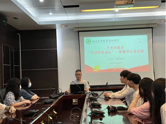 6月14日下午,艺术传媒系党总支专职组织员欧阳昭勇带领同学们一起读党报。活动现场,欧阳昭勇首先就《人民日报》中的《新时代青年要做坚定的马克思主义者》的文章谈了自己的感悟,随后学生们积极发言。新闻2002邢智慧说道;“我更加深刻的认识到作为高职学生所肩负的历史使命,在日常学习过程中我要勤学专业知识,苦练专业技能,通过自身专业专长投身国家建设,践行‘强国有我’的铿锵誓言。”