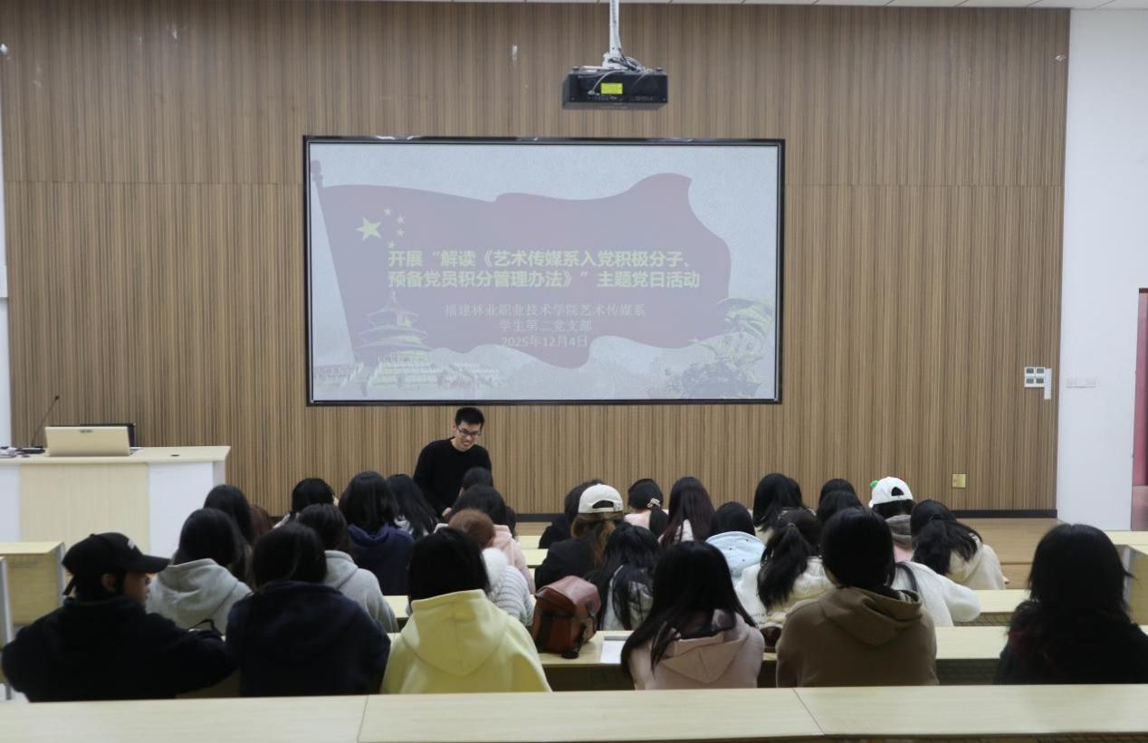 为进一步规范党员发展教育培养工作,保障发展党员工作公开、公平、公正,帮助入党积极分子与预备党员精准把握积分管理要求,充分发挥量化积分的导向与激励作用,2025年12月4日,艺术传媒系学生第二党支部在艺术楼阶梯教室开展“解读《艺术传媒系入党积极分子、预备党员积分管理办法》”主题党日活动。活动由支部书记路雨霏主持,全体党员及入党积极分子参加。