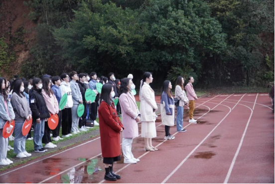 阳春布德泽,万物生光辉。2022年3月7日早晨7:00,福建林业职业技术学院天麟校区大雨初歇,空气清新。艺术传媒系天麟校区1000多名师生排成整齐的队伍,齐聚在天麟校区田径场,庄严地举行2022年第一场升旗仪式。