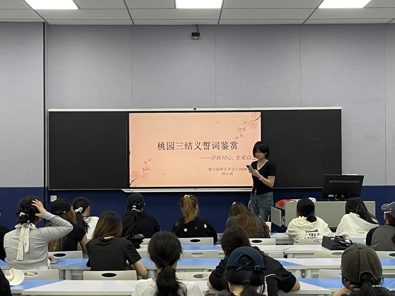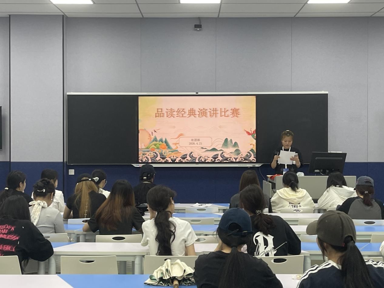 为引导广大学子在经典阅读中汲取智慧、涵养品格,传承中华优秀传统文化,2026年4月21日下午,艺术传媒系于艺术楼202教室举办2026年校园“品读经典”演讲比赛。各班同学积极参与。