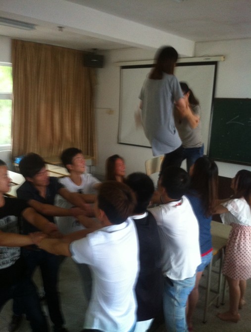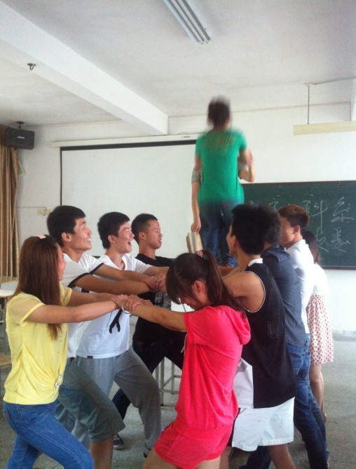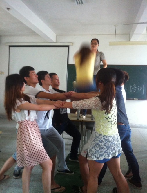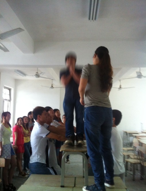 活动中,陈红英老师首先让同学进行了互动,把我们带入整个培训的活动氛围当中,为他人介绍自己,说出自己的优点。第二个环节是心理拓展小游戏“信任背摔”,是一项心理素质拓展的活动,目的是通过这个活动建立起彼此间的信任关系。同时,这个活动还可以锻炼心理素质,克服恐惧,对学生干部的心理素质提升有很大帮助。在每个同学都尝试之后我们都感慨万千!