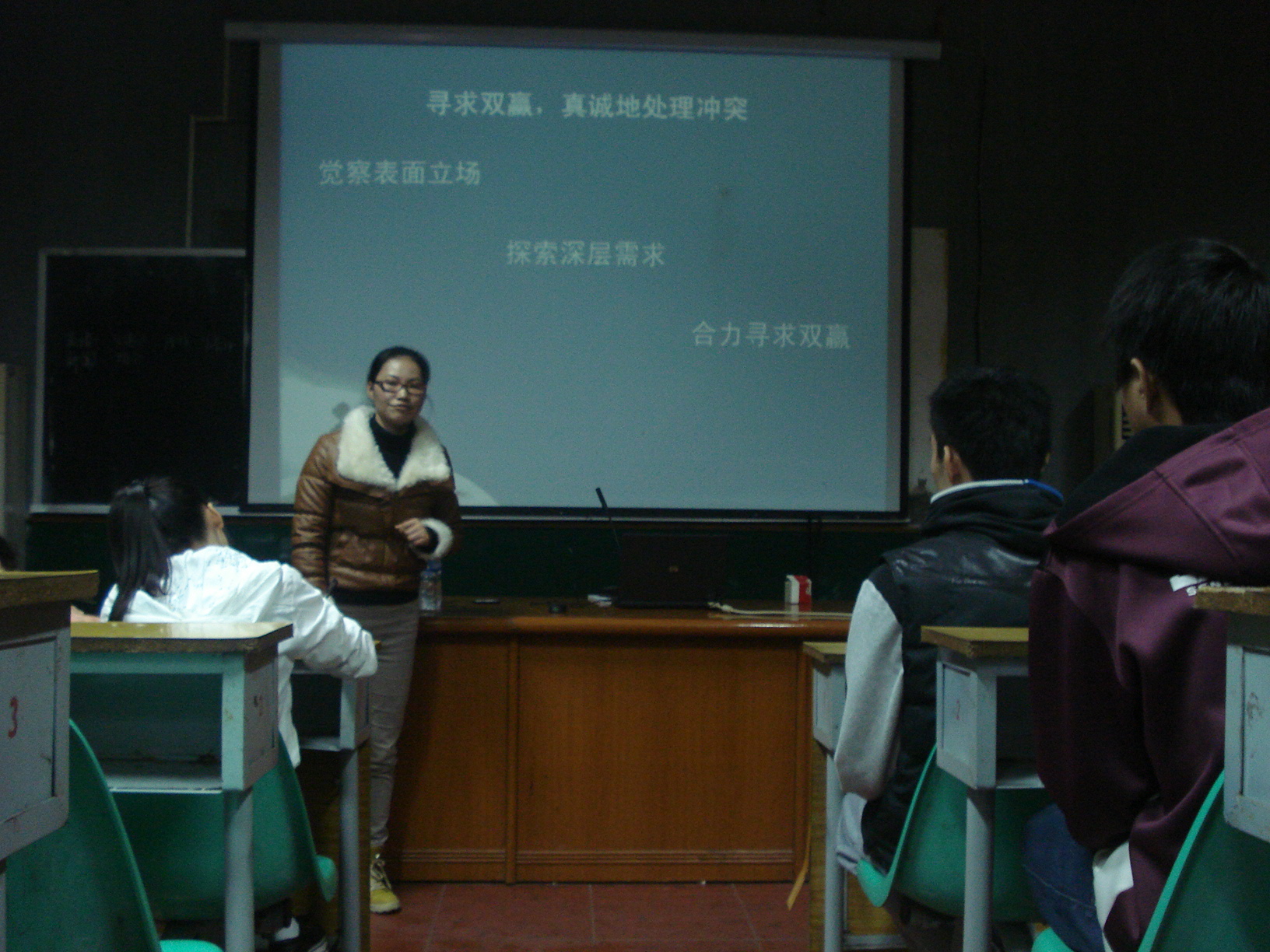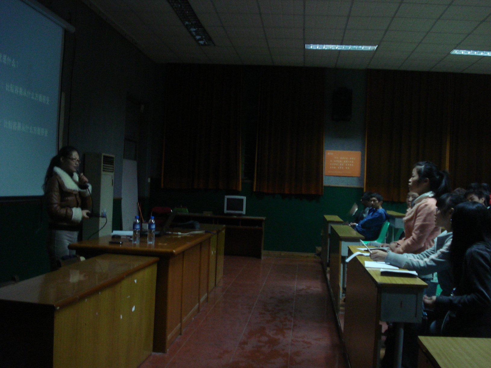 2012年11月28日晚上7:30分,人文社科系辅导员陈红英讲师的主题讲座关于《大学生情绪情感》在第一多媒体举行。本次讲座的参加对象是人文系全体成员及心连心协会的学生,意在让大家不在感情中迷失自我,发展健全的真我,并成为一个能在情感中自由翱翔,沉着应对的新新大学生。