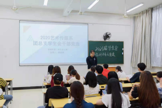 为巩固艺术传媒系团委、学生会组织,顺利实现新老学生干部交接,保持学生干部队伍的稳定性和延续性,推进学生自主管理,2021年6月17日晚上,福建林业职业技术学院艺术传媒在江南校区实训四举行团委学生会换届竞选演讲大会。艺术传媒系党总支书记陈政、学生科长兼团总支书记叶章球、专职辅导员唐婧、雷忠春、孙文欣、李延卿等6位老师以及主席团负责人、各部门现负责人到场担任评委。