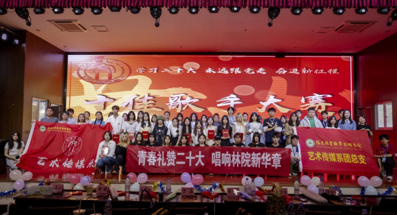 为学习贯彻党的二十大精神,进一步丰富校园文化生活,努力营造积极向上、健康文明的校园文化氛围,充分展示同学们积极向上的精神风貌,2023年4月20日下午14:30,艺术传媒系于江南礼堂举办校园“十佳歌手”大赛。本次比赛由艺术传媒系主办,艺术传媒系团总支承办。艺术传媒系党总支书记陈政,系学生科科长兼团总支书记廖士喜、系教务科科长丁磊、全体专职辅导员担任评委,两委会学生干部、各班同学踊跃到场观赛。