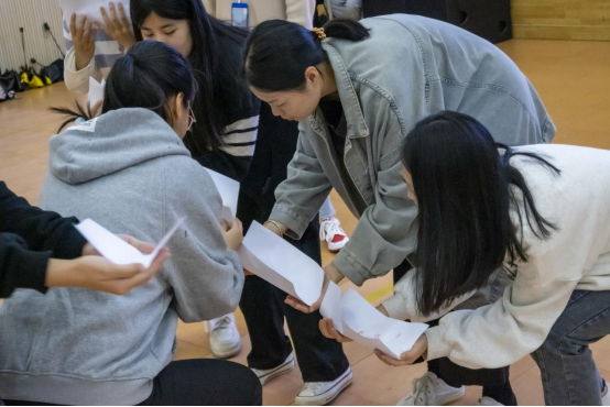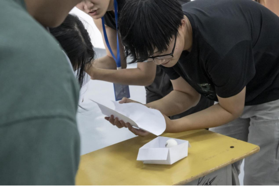 最后是“高山流水”比赛和“摸石头过河”比赛。“高山流水”比赛每队6人,用纸张为小球搭建桥梁,如果球从纸张上掉出,则回到起点重新开始。“摸石头过河”比赛则是脚踩石头,交替行进,接力“过河”,两个比赛都是用时最少的队伍获胜。前者非常考验团队合作的协调性,稍微一点不小心球就会掉落,选手们都屏息敛声,生怕声音会影响手中的球。后者的赛事现场又是另一种场景,选手们步伐矫健、奋力向前,呐喊声、加油声也响彻全场,为校园增添了激情与活力。