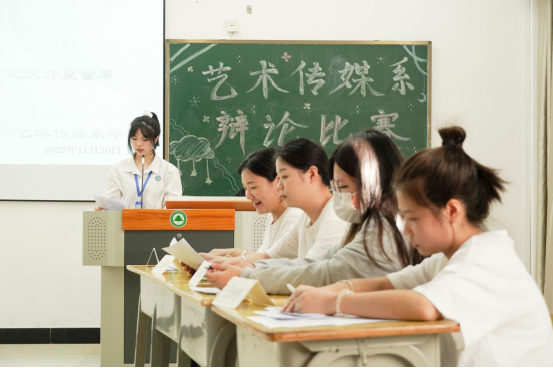 为展示大学生的青春风采,锻炼同学们的语言组织表达能力及逻辑思维能力,培养团队协作精神,2022年11月20日下午2点,艺术传媒系于江南校区教学楼605教室举行第七届“翰林杯”辩论赛总决赛。此次大赛由艺术传媒系学习部承办,各班级踊跃参加。