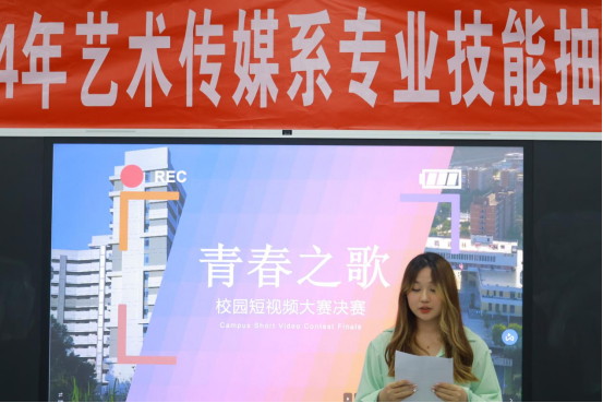 为深入学习贯彻习近平新时代中国特色社会主义思想和党的二十大精神,充分发挥文化育人功能,讲好新时代青年故事,引导广大青年树立践行社会主义核心价值观,争做有理想、敢担当、能吃苦、肯奋斗的新时代好青年,2024年6月24日下午,艺术传媒系于艺术楼202教室举办“青春之歌”校园短视频大赛决赛。艺术传媒系主任曾秀云,副主任张建红,学生科长廖士喜,文化传播教研室主任胡静婷,专任教师卿琼、林智涵等担任评委,各班同学积极参加。