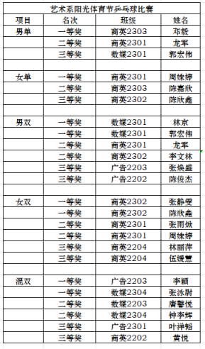 本次阳光体育节羽毛球和乒乓球比赛的圆满举办,为我系学生提供了一个展示自我、交流爱好的平台,更在引导同学们进行体育锻炼、培养兴趣爱好和增强团队合作能力上起到了积极作用。同学们既释放了压力,又收获了快乐。我系将继续积极开展丰富的课外活动,为构建和谐多彩的校园生活贡献力量。