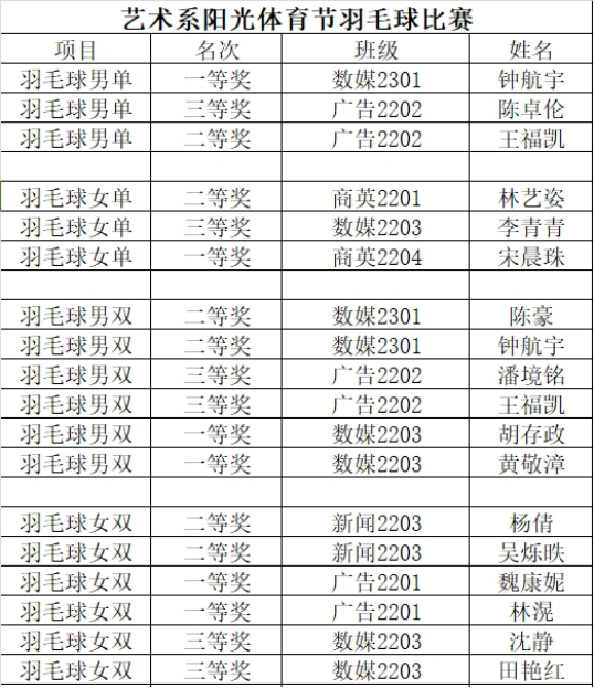 为进一步丰富校园体育文化活动,培养同学们的集体荣誉感和积极向上拼搏精神。我院于2023年11月5日—2023年12月15日开展第十四届“迎新杯”体育节活动。艺术传媒系学子们积极参与,此次的活动项目包含拔河比赛、乒乓球比赛以及羽毛球比赛。