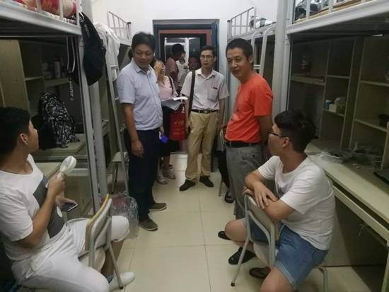 会后,学院党委副书记陈洪尧带领我系老师走访新生宿舍。询问新生住宿情况,并鼓励大家尽快适应集体生活,互帮互助,同一宿舍的同学要互相勉励,勤奋学习,积极向上,营造良好的宿舍氛围。