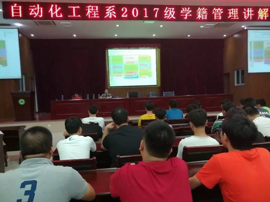 9月7日晚19点,福建林业职业技术学院自动化工程系在我院(江南校区)举行了2017级新生学籍管理入学教育讲座,黄立靖老师就新生们日后学籍相关问题作了详细讲解。2017级全体新生参加了讲座。