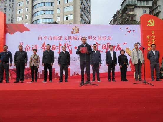 11月06日,我系志愿者协会在叶文美老师带领下受邀参加了在南平大剧院广场举办的“奋进新时代,共创文明城”大型公益活动。此次活动由南平市委文明办、南平市委市直机关工委、南平市环保局主办,南平市环保志愿者协会承办。南平市有关领导参加活动并倡议大家积极参与到创城建设中去。
