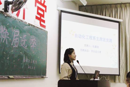 竞聘过程中,各个候选人依次上台进行了3分钟左右的演讲。演讲过程中,大家分别就工作经历、自身优势、对竞选岗位的认知、未来工作设想等方面进行阐述。此外,还针对他们在两委会工作期间发现的问题提出了自己的解决方案,为自动化工程系学生工作发展献计献策。慷慨激昂、自信大方的演讲赢得了在座人员一次又一次的热烈掌声,也让大家更加了解新一任两委会成员们的能力与优势所在。