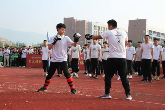 17级代表方阵进行的是拳击表演,火热的音乐配上激动人心的格斗,给人极富有冲击力的视觉震撼,演绎出自动化学子不畏挑战的拼搏精神。