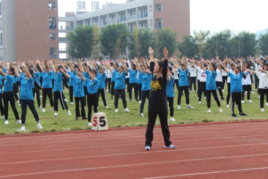 接着运动会第一个项目——广播操比赛吹响号角。宣布比赛开始的声音响起,各系队伍以整齐有力的步伐快速进入赛场,并以体操队形展开,气势如虹。随着熟悉的广播操音乐响起,同学们从伸展运动到整理运动,每一式都刚劲有力,把广播体操的简单规范、明快流畅、横平竖直的风格特点展露无疑。本次广播操比赛是一次规范的大练兵,也是青春活力的一次大检阅,更是各系和谐共进的一次集体主义精神的大展示。