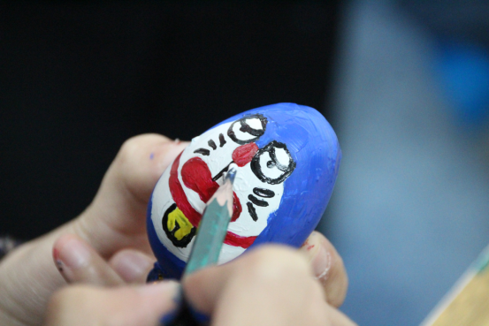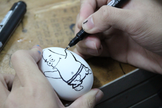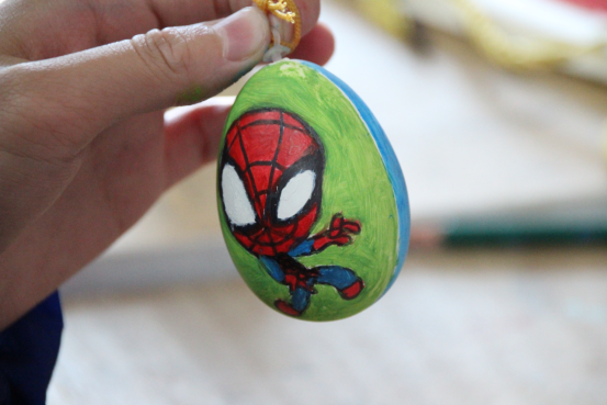 活动开始前,同学们都陆续到场。大家领到工具后,有的人在仔细构思图案,有的同学则直接开始上手绘画。随着时间的流逝,一个个精致的彩蛋也逐渐呈现在我们眼前。作品里不仅有诸如哆啦A梦、蜘蛛侠、派大星等大家十分熟悉的动画人物,还有可爱的表情,更有其他丰富多样的样式。