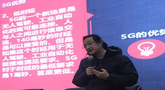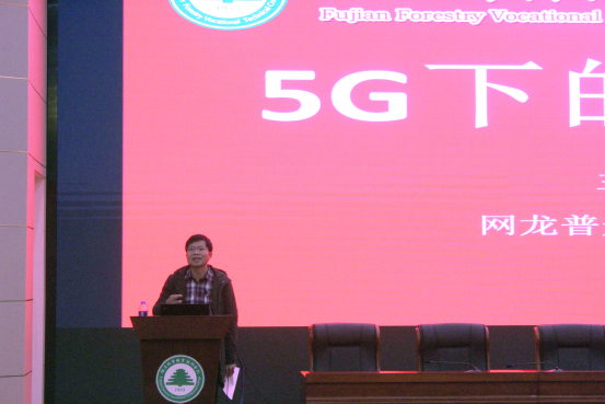 会议伊始,蔡毅总监先介绍了网龙普天教育科技有限公司的发展现状,并向师生们展示了自己开发或参与创作的作品,让在场的师生们对VR有了一个全新的认识。而后,蔡毅总监通过生动幽默的语言介绍了5G新一代移动通信技术究竟是什么,总结了5G的特点--高速率、低延迟、万物互联,并解说了5G的广泛应用。同时对现代VR技术的硬件设备、5G云端应用进行了详细的解说。