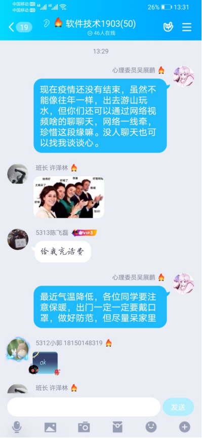 各辅导员积极深入班级做好日常防疫工作,做好正面引导