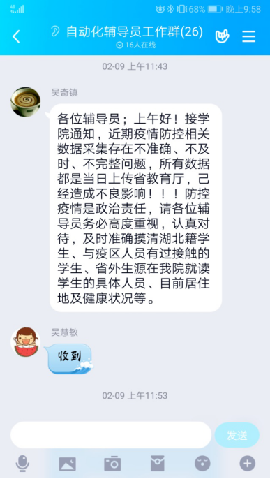 二是搭建宣传工作载体,做好思想引领。自动化工程系党总支创新工作方法,利用学生喜闻乐见的多种形式开展防控宣传工作,切实做好新型冠状病毒感染的肺炎疫情防控工作。利用QQ、网站、微信公众号等新媒体,制作发布基础防疫知识和系列“抗击疫情”比赛,报道自动化工程系“三支一扶”毕业生余伟毅等奋战在前方的战“疫”故事,让防疫科普工作贴近学生生活;依托辅导员队伍在学习强国、welink软件、优慕课等平台,召开线上防疫主题教育班会,通过多形式强调了预防病毒的重要性,同学们积极配合,热情发言,献计献策。