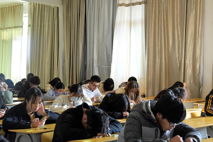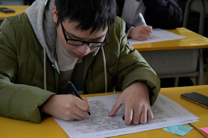 竞赛开始前,我系工作人员已提前就位,分发好试卷并维持考场秩序。下午14点,参赛者们先进行座位抽号后进入考场入座,伴随着开场铃声响起,每个选手开始奋笔疾书。整场考试过程中,工作人员尽职尽责监考,参赛选手们专心致志地答题,把自己对培养良好宿舍安全行为的理解写于试卷上,展现了当代学生积极向上的精神面貌。