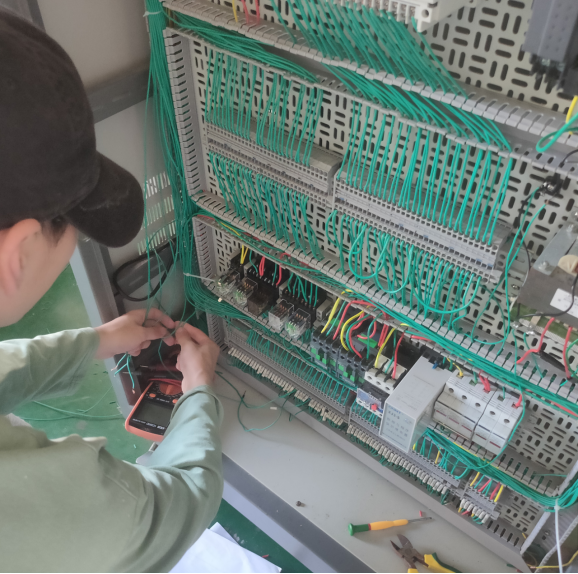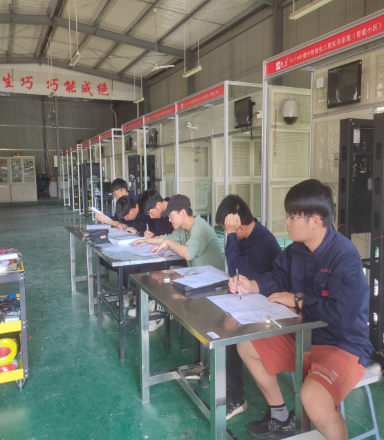 参赛学生们熟练的操作:对每一根电线的搭建、对每一颗螺丝的装配,都展现着职业育人的教学理念和“业精”“笃行”的天麟精神。