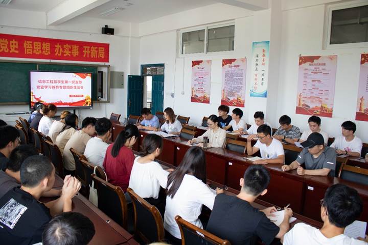 7月12日上午,信息工程系学生第一党支部紧紧围绕“学党史、悟思想、办实事、开新局”主题,认真贯彻“学史明理、学史增信、学史崇德、学史力行”要求,组织全体党员召开专题组织生活会,交流学习体会,查找差距不足,引导广大党员增强“四个意识”、坚定“四个自信”、做到“两个维护”。会议由党支部书记秦英爱主持,系党总支副书记(主持)罗志斌、党员教师谢婉欣、李瑞以及支部全体学生党员参加。