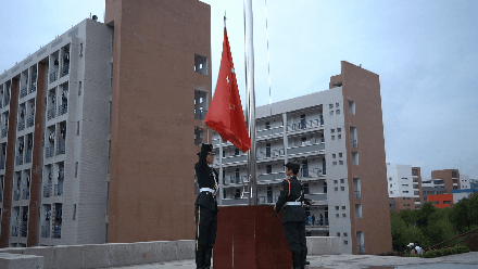 彩旗队正步走过,彩旗列列迎风展,青春洋溢、激情四射。