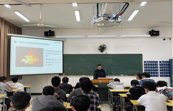 吴处长通过分析当前治理全球生态环境面临的种种挑战,使学生们更加认识到恶劣的生态环境时刻威胁着人类,全球行动、全球应对、全球合作是人类唯一的选择。