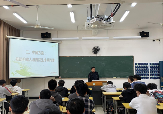 为深入贯彻落实习近平总书记提出的生态文明思想,推动构建人与自然生命共同体,11月23日下午,我院招生就业处处长吴奇镇在实训四601教室为无人机应用技术2001班上了一堂以“共同构建人与自然生命共同体”为主题的形势与政策课。