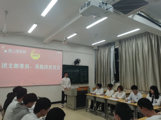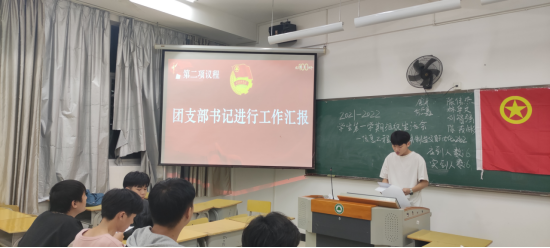 第二项议程,由团支书结合本班团支部的具体特点向班级成员汇报本学年开展的工作以及存在的问题,深刻分析其原因,并对自己在学习、工作等方面的不足作了深刻反思。