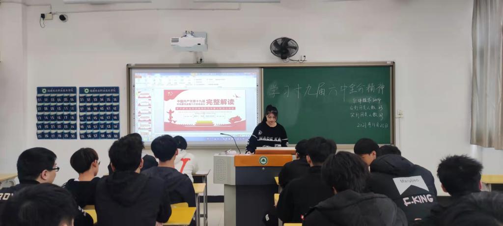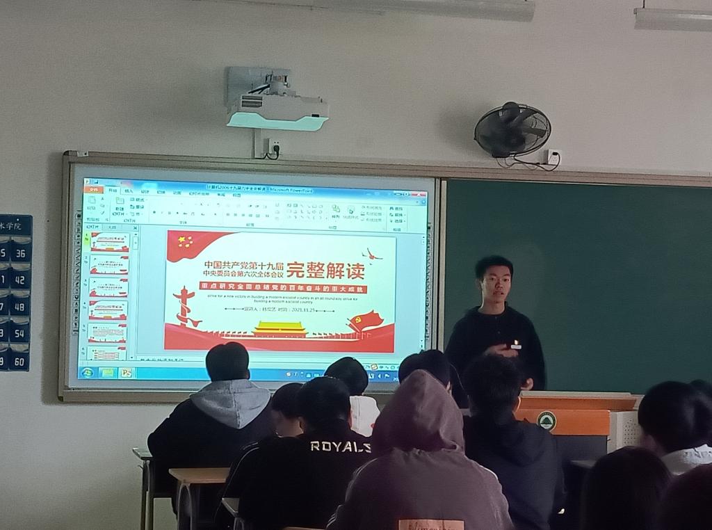 2021年11月8日至11日,中国共产党第十九届中央委员会第六次全体会议在北京召开,为全面深入学习宣传贯彻党的十九届六中全会重要精神,加强对广大青年的政治引领和思想武装,不断增强“四个意识”,坚定“四个自信”,做到“两个维护”,坚定不移听党话、跟党走,推动习近平新时代中国特色社会主义思想在青年中入脑入心,推动党史学习教育走深走实,信息工程系于11月12日-11月24日组织各班级团支部开展学习党的十九届六中全会精神主题团日活动。