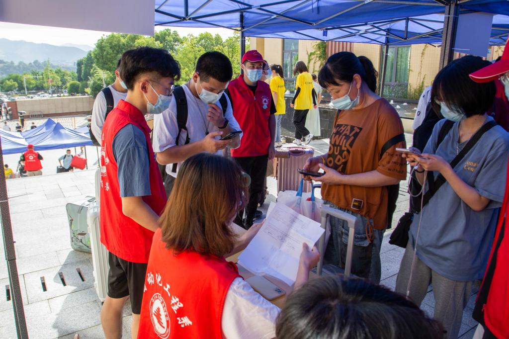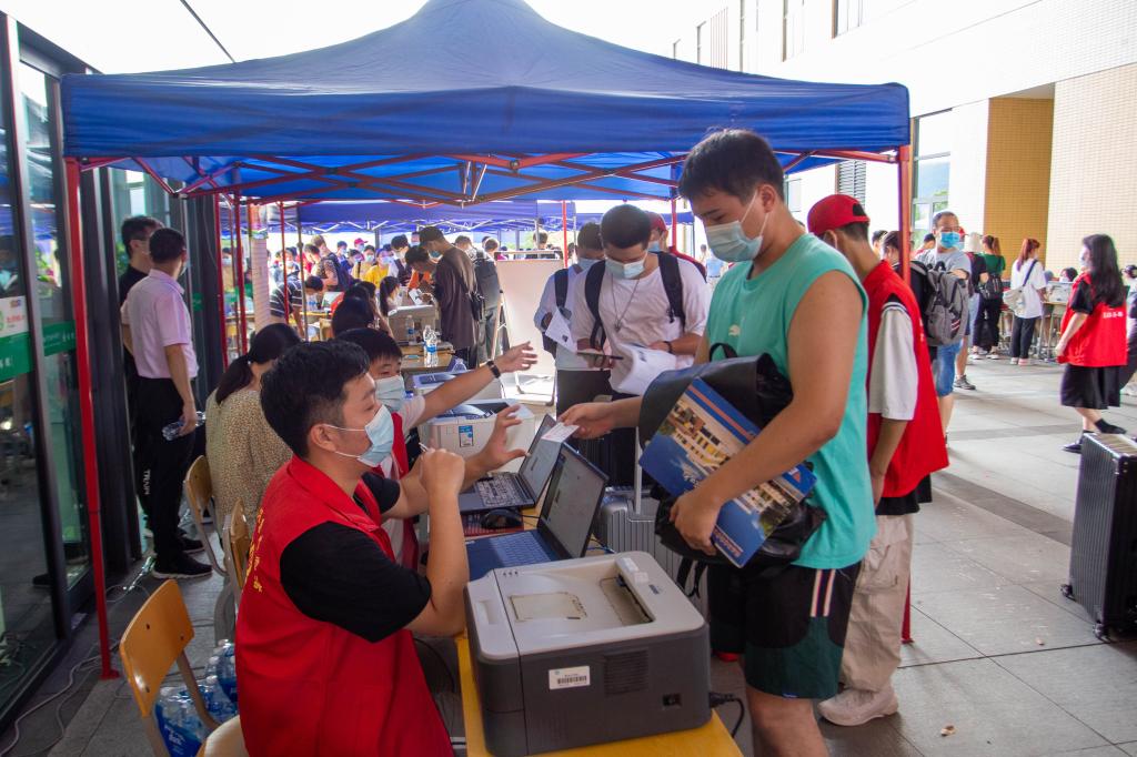 各项工作有条不紊地进行,测温、核对身份信息、查验健康码、查验核酸报告……疫情当前,一道道严格的入校手续,守护着每一位新生的安全。