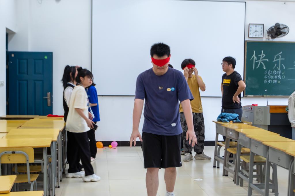 本次活动分别设在实训四605、705和707三个教室,游戏项目有各尽所能,协调发展踩气球、盲人敲锣、你画我猜、萝卜蹲等。